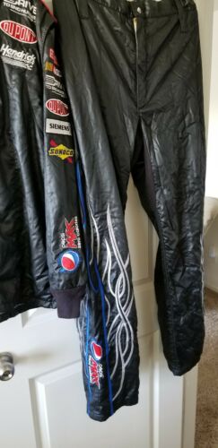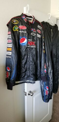 Jeff Gordon Pepsi Max Race Used Pit Crew Fire Suit. This is a very rare and precious item for any fan. The perfect item for any man cave or race fan in general. Suit was used during Jeff’s Pepsi Max years and is a 2 piece uniform. This item is bright and has the Pepsi flames on both pieces. It will ship from Phoenix Arizona for only $15. Please feel free to ask any questions about other fire suits available as well. All sales are final.